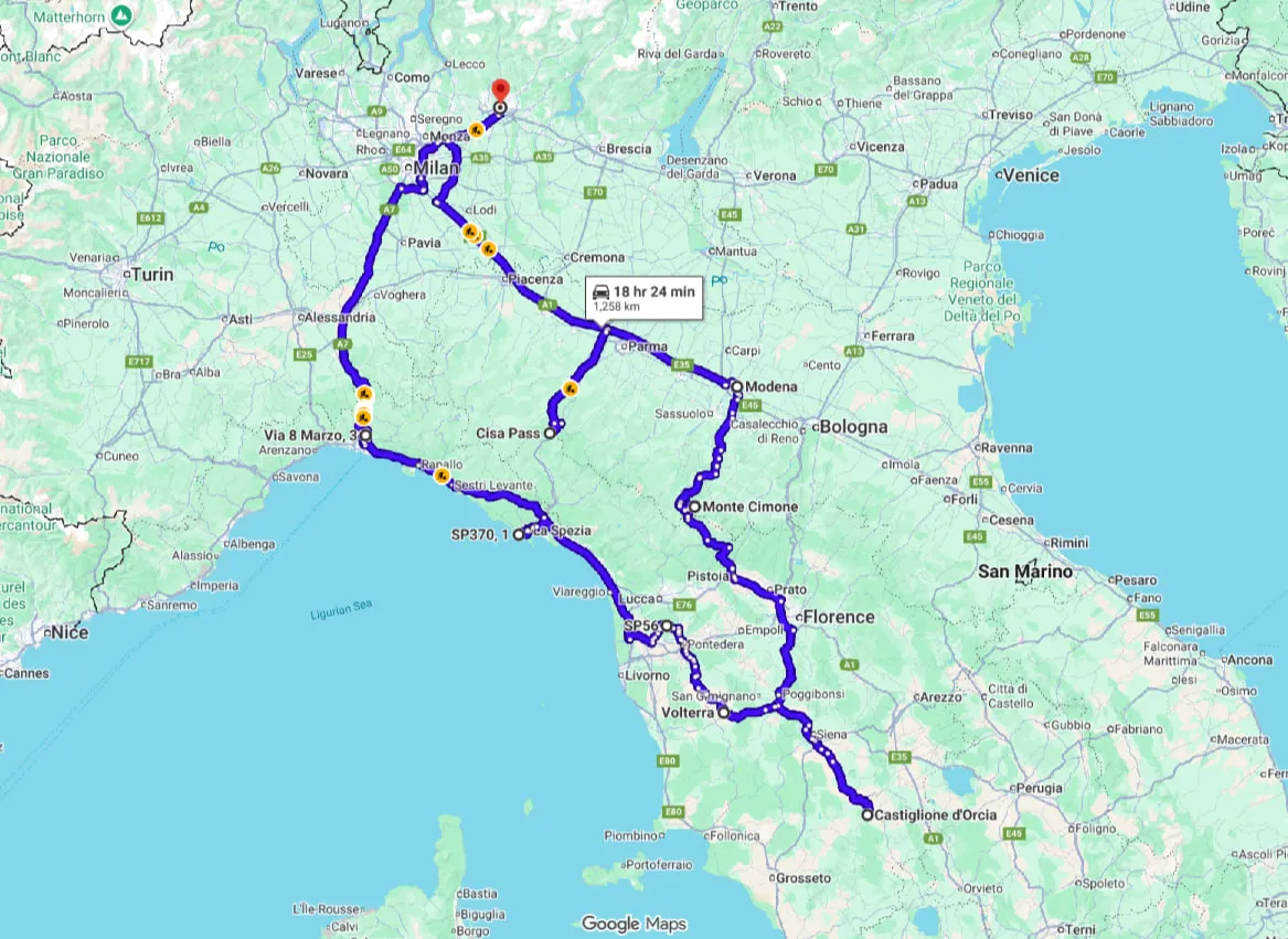A scenic guided ride through Tuscany - rolling hills, historic towns, and iconic Italian roads. Designed for confident riders who want more riding and deeper immersion.